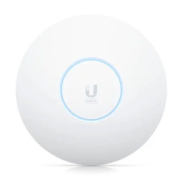 O Access Point U6 Enterprise Wi-Fi 6E proporciona alto desempenho de rede, montável em teto e capaz de prover cobertura em múltiplas bandas para ambientes de alta densidade. Possui suporte a Wi-Fi 6E (Bandas de 2.4/5/6 GHz), throughput agregado de até 10.2 Gbps, 1 Porta RJ-45 de 2.5 GbE (PoE IN) e é alimentado via PoE+ com os Switches UniFi Enterprise para Throughput Multi-Giga.