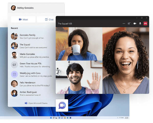 Conecte-se instantaneamente com as pessoas de quem você gosta direto na área de trabalho com o Microsoft Teams. Ligue ou converse gratuitamente, não importa o dispositivo em que estejam.
